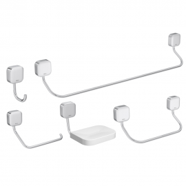 Acessórios Pix , a harmonia das linhas retas. Especificações Atributos Contém Saboneteira, Papeleira, Porta Toalha Argola, Porta Toalha Barra e Cabide Saboneteira com base em resina de alta resistência, fácil remoção e limpezaSistema de fixação com furos oblongos, garantia de fixação firme e com fácil ajuste fino tanto na vertical, quanto na horizo..